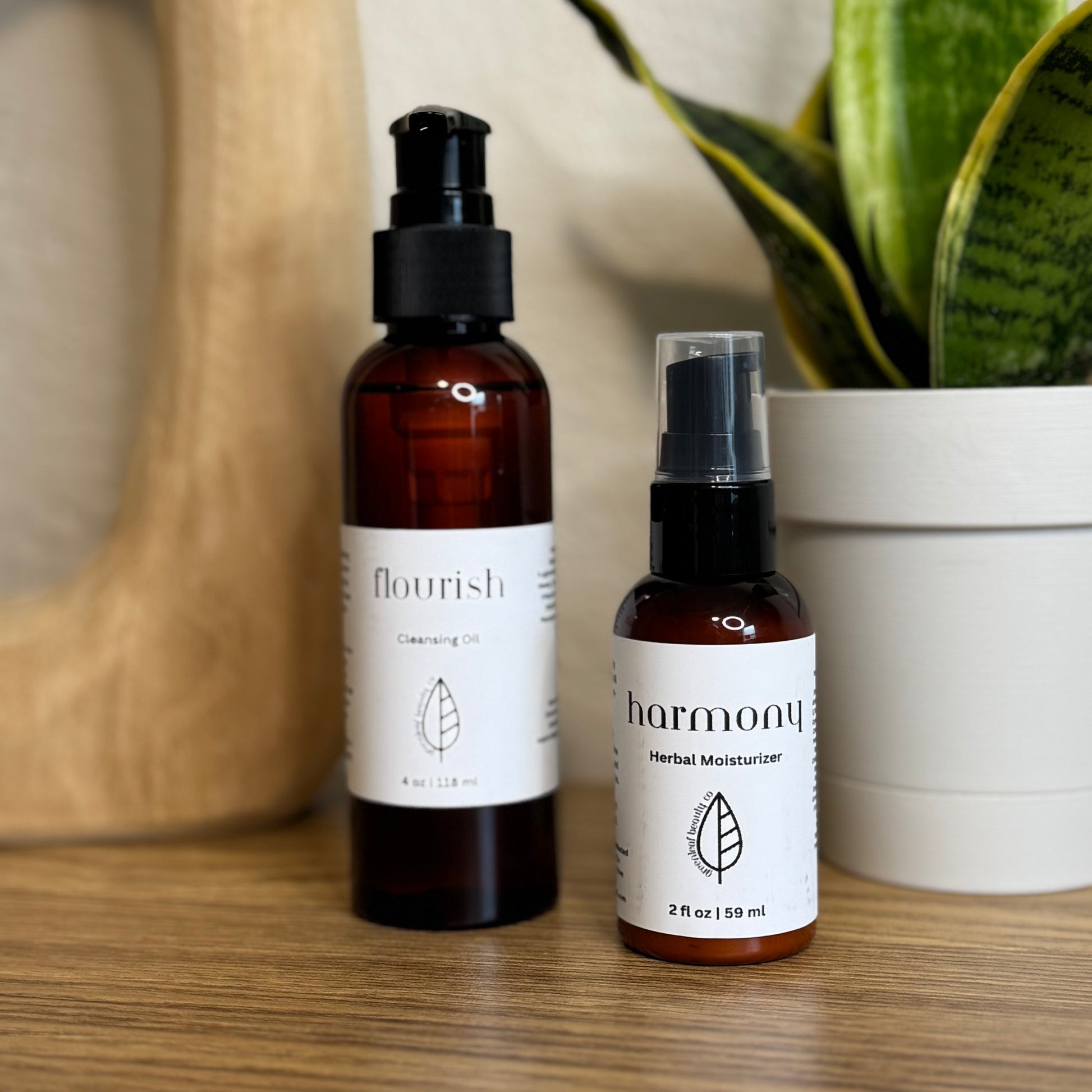 This set includes: Flourish Oil Cleanser + Harmony Herbal Moisturizer